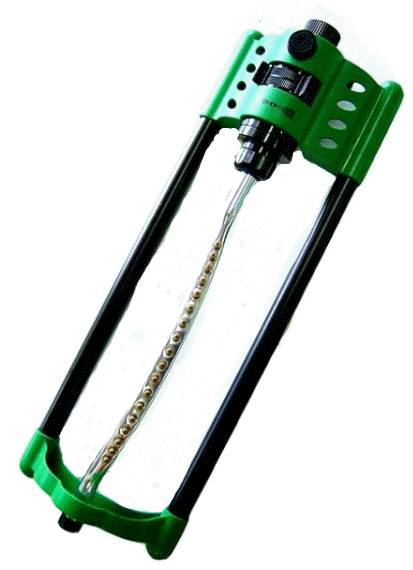 Metalic rotate sprinkler mounted on metalic stake. Regulation of jact distance and jact dispersion.Regulation of wet area angle:section irrigation between 0º and 360º or full rotation of 360º. Quick "click" coupling.